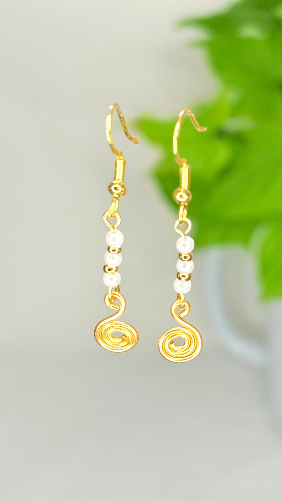 עגילים עדינים בשילוב המושלם של ספירלה ודמוי פנינה.