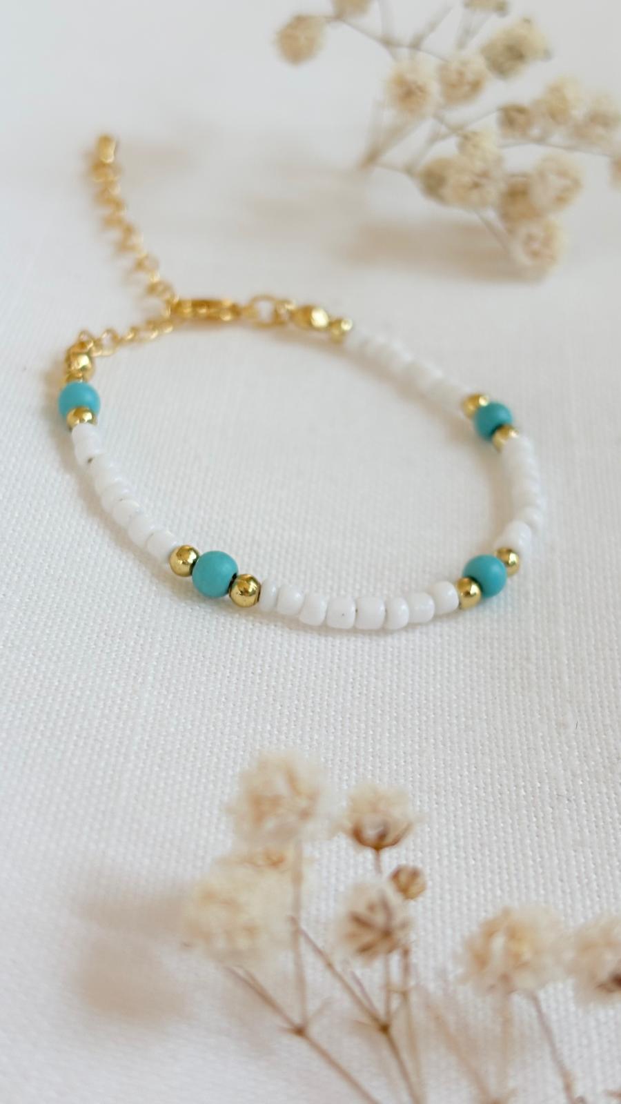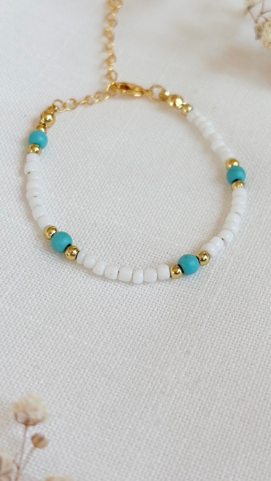 צמיד של חרוזים לבנים עם נגיעות טורקיז מהממות