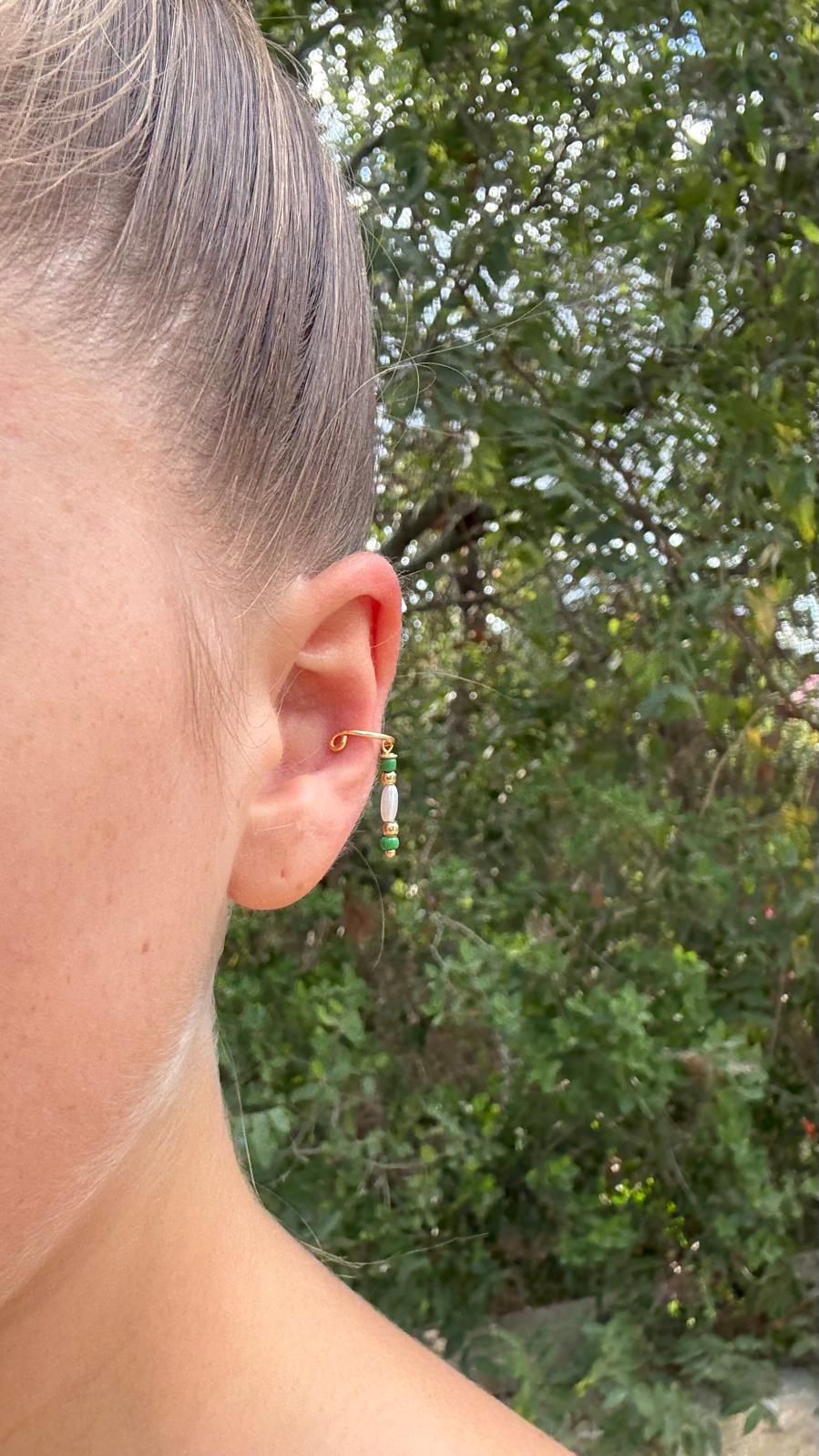 דמוי קונץ' עם תליון ירוק תלוי.